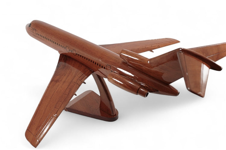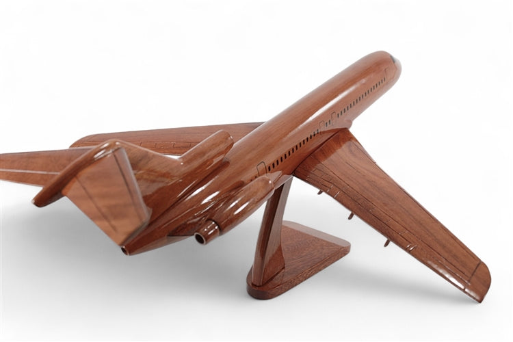 This Boeing 727 scale model is handcrafted from solid mahogany. Careful