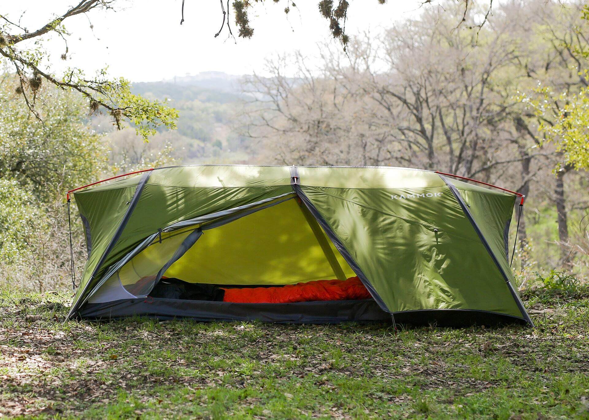 Two large tent doors offer easy in-and-out access in tent and hammock mode. Interior gear loops and four built-in side pockets provide organization to store maps, journals, or late-night snacks. Two larger vestibules provide additional dry storage.